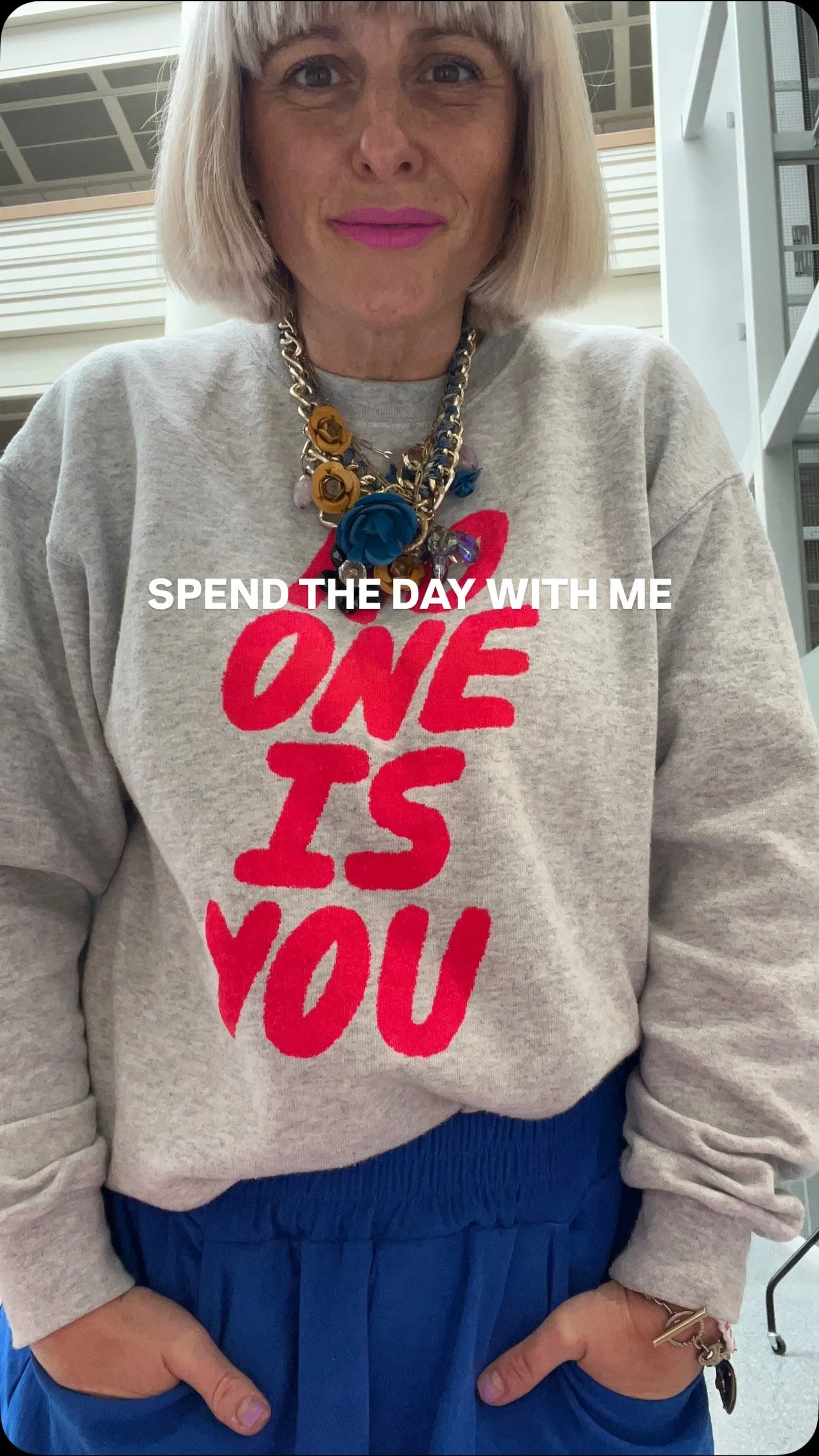 "Iโm so chuffed with my super funky Positive Behaviour jumper, Iโm hoping itโs going to improve me as a person. Loving all the branding too."